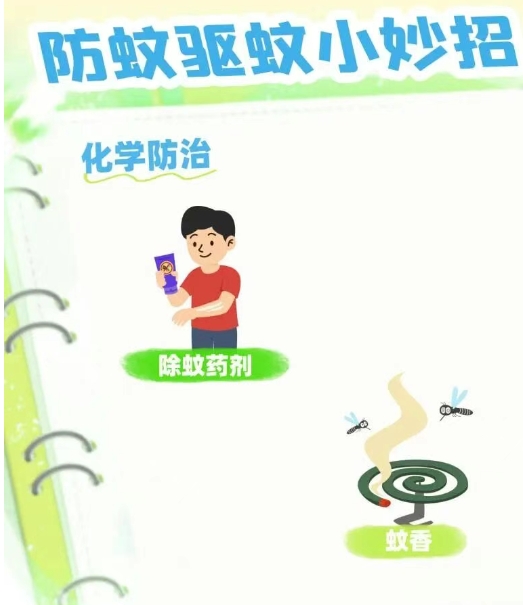 ▎對(duì)于居民家庭或賓館等居室內(nèi),可使用市售有合格證、登記證的氣霧劑、蚊香等衛(wèi)生殺蟲(chóng)劑用品進(jìn)行防蚊滅蚊。