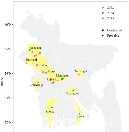 過去幾年里,印度及孟加拉國(guó)陸續(xù)報(bào)告過零星病例和小規(guī)模聚集。