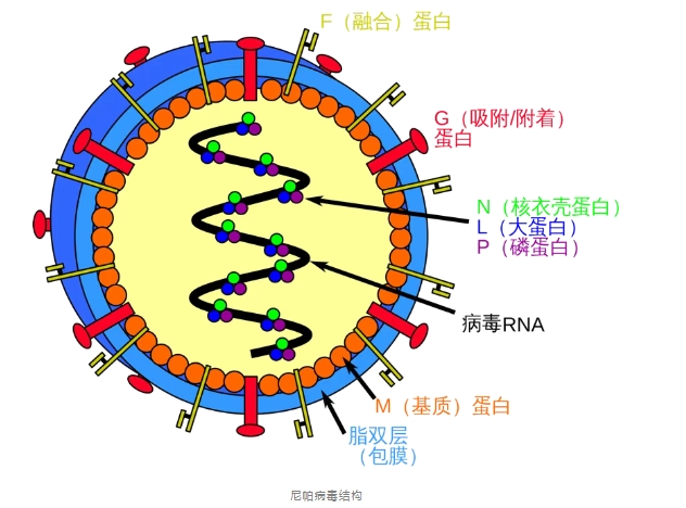 該病毒屬于副黏液病毒科亨尼帕病毒屬,是一種RNA病毒,與引起馬匹和人類急性呼吸道感染的亨德拉病毒密切相關(guān)。